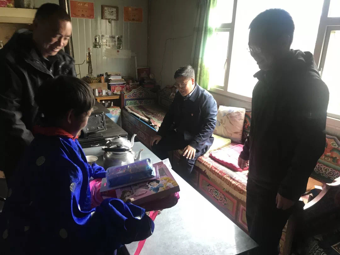 ? ?捐贈儀式結束后,在色達縣委副書記桂志敬和學校老師的陪同下,王海臣一行走訪了貧困學生家庭,與學生家長親切交談,實地了解他們的生活情況,并將書包、字典、文具等用品送到孩子手中。