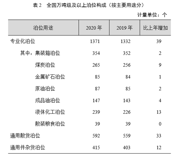 年末全國萬噸級(jí)及以上泊位中,專業(yè)化泊位1371個(gè),比上年末增加39個(gè);通用散貨泊位592個(gè),增加33個(gè);通用件雜貨泊位415個(gè),增加12個(gè)。