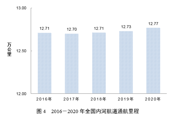 年末全國內(nèi)河航道通航里程12.77萬公里,比上年末增加387公里。等級(jí)航道里程6.73萬公里,占總里程比重為52.7%,提高0.2個(gè)百分點(diǎn)。三級(jí)及以上航道里程1.44萬公里,占總里程比重為11.3%,提高0.4個(gè)百分點(diǎn)。