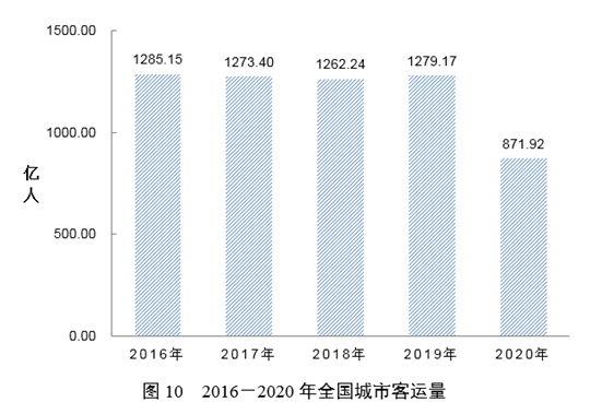 全年完成城市客運(yùn)量871.92億人,比上年下降31.8%。分方式看,公共汽電車客運(yùn)量442.36億人、運(yùn)營里程302.79億公里,分別下降36.1%和14.5%;軌道交通客運(yùn)量175.90億人,下降26.3%;巡游出租汽車客運(yùn)量253.27億人,下降27.2%;客運(yùn)輪渡客運(yùn)量0.39億人,下降47.1%。