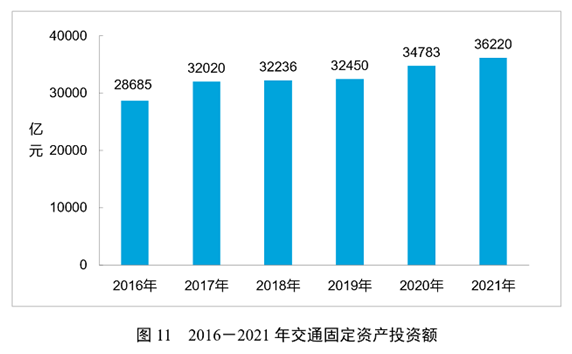 全年完成交通固定資產投資36220億元,比上年增長4.1%。