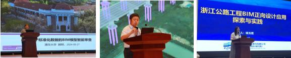 在典型工程應用實踐方面,清華大學長聘教授、國家企業信息化應用支撐軟件工程技術研究中心副主任顧明,四川省公路規劃勘察設計研究院數智工程研究院副總工汪軍、浙江數智交院科技股份有限公司BIM與智能設計研發中心主任錢玉蓮分別分享了《基于標準化數據的BIM模型智能審查》、《四川省院公路工程BIM數字化應用實踐》和《浙江公路工程BIM正向設計應用探索與實踐》的精彩報告。