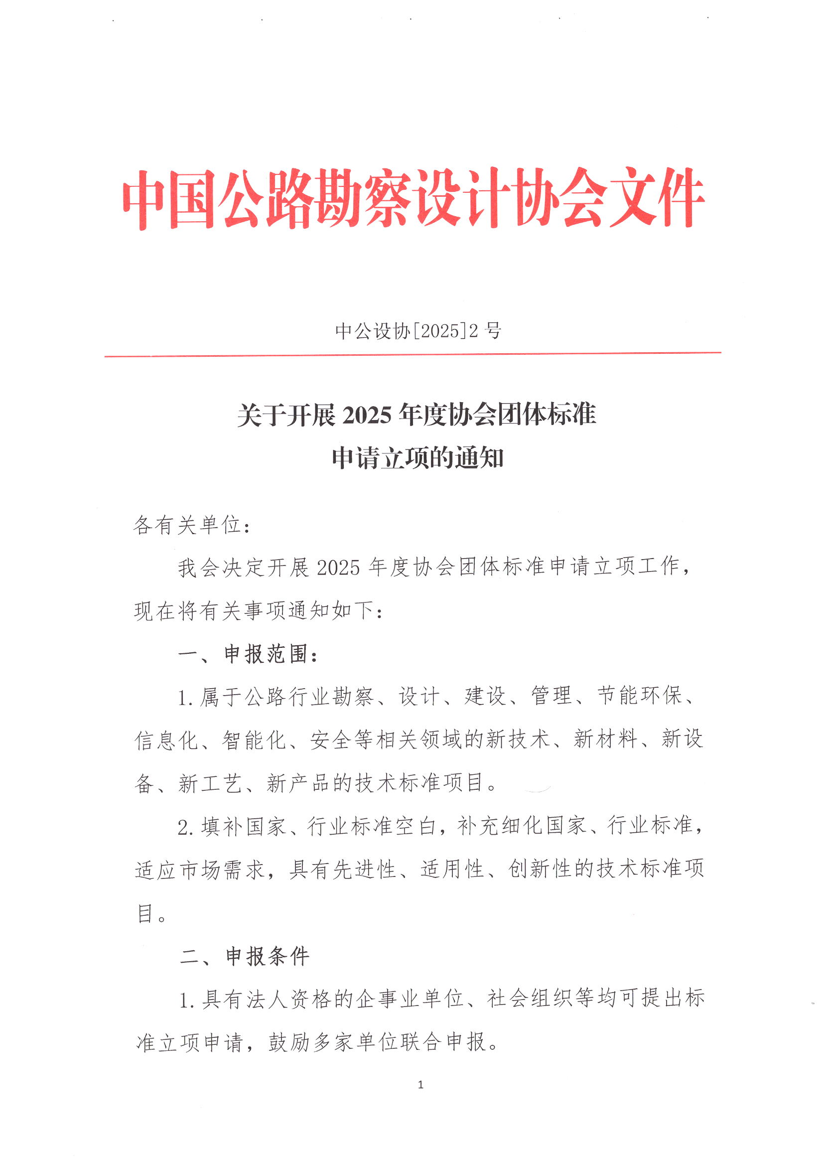 關于開展2025年度協會團體標準申請立項的通知