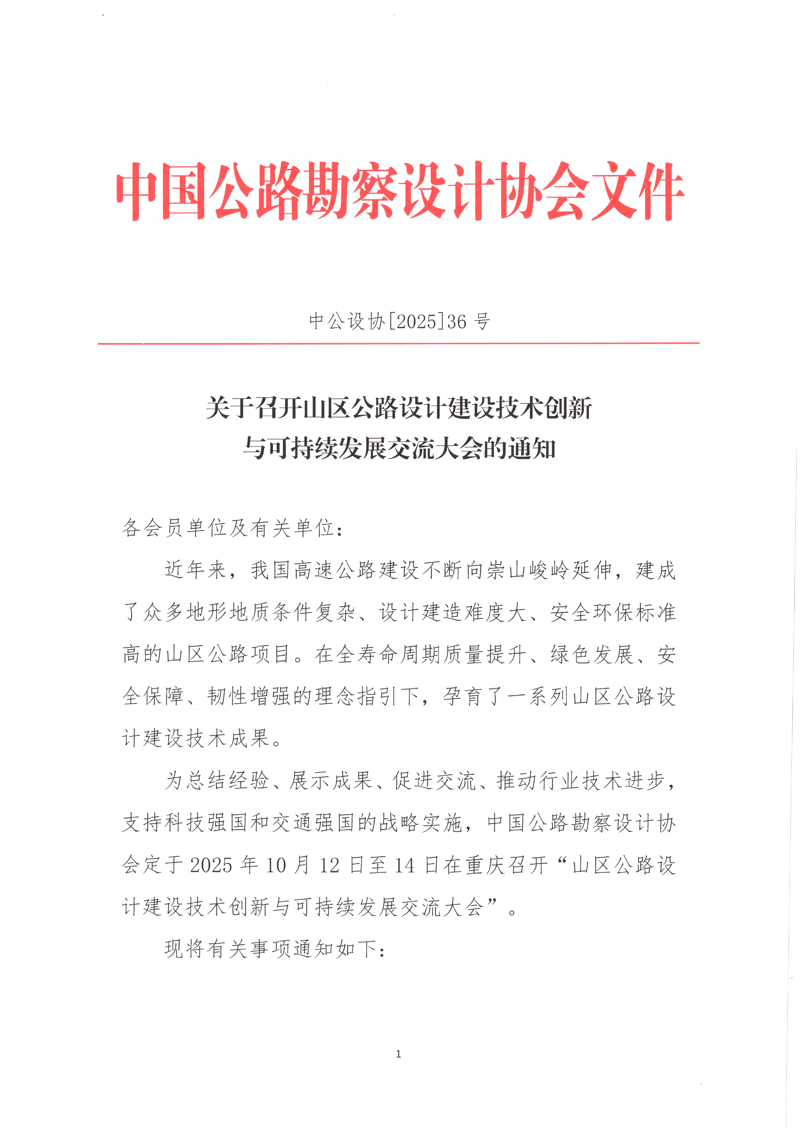 關于召開山區公路設計建設技術創新與可持續發展交流大會的通知